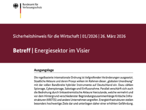 von Markus KremserDie deutsche Energiebranche steht unter Druck – die erneuerbaren Energien seit dem Amtsantritt von Katharina Reiche noch einmal mehr. Das ist keine neue Erkenntnis, aber eine, die bislang vor allem politisch, regulatorisch oder wirtschaftlich verstanden wurde. Inzwischen kommt eine weitere Dimension hinzu: Sicherheit. Das Bundesamt für Verfassungsschutz (BfV) macht mit seinem neuen Sicherheitshinweis deutlich, dass… Verwundbare Infrastruktur: Die blinden Flecken der Erneuerbaren weiterlesen - Sand, Solarzellen und Elektroautos – Energiewende und Bevölkerungsschutz